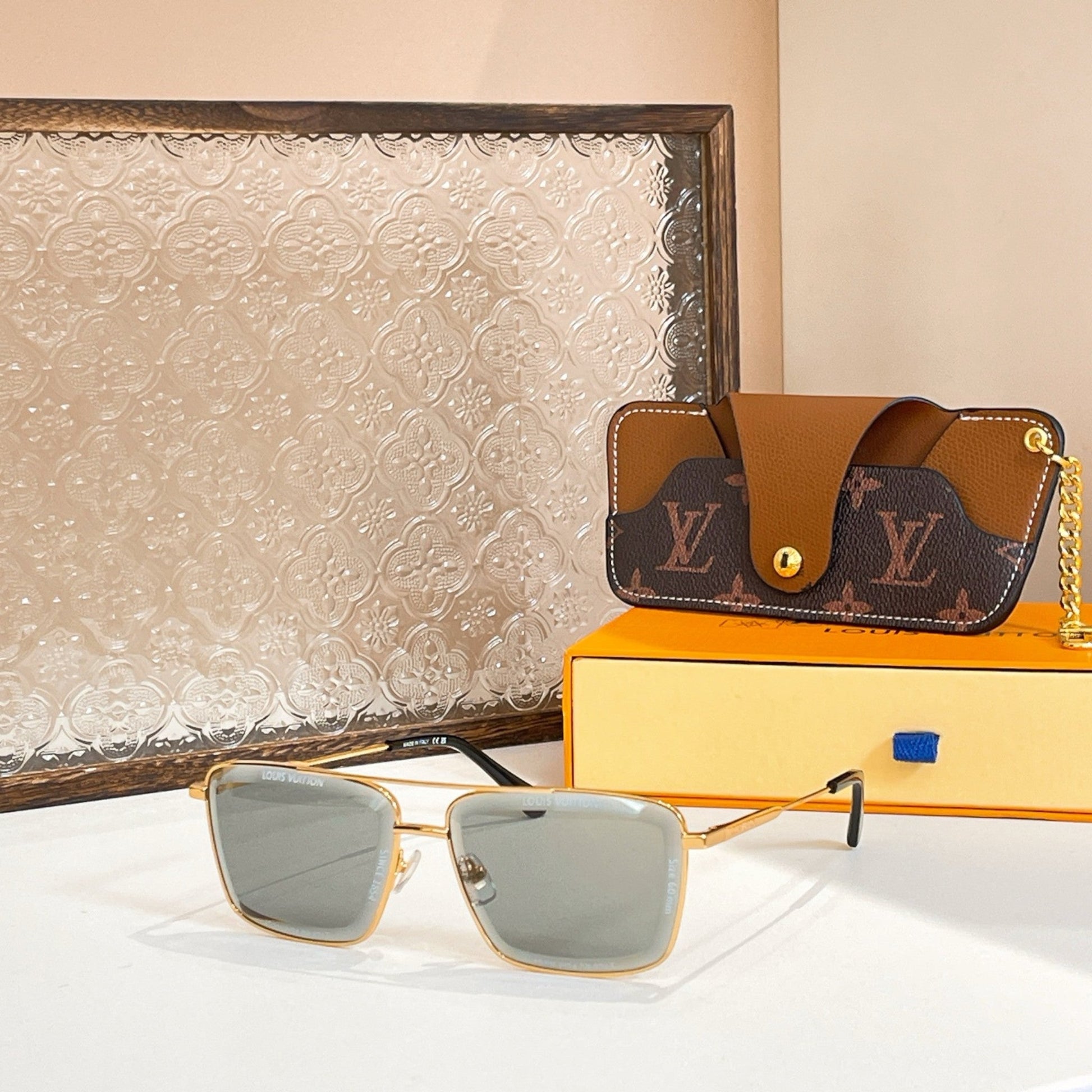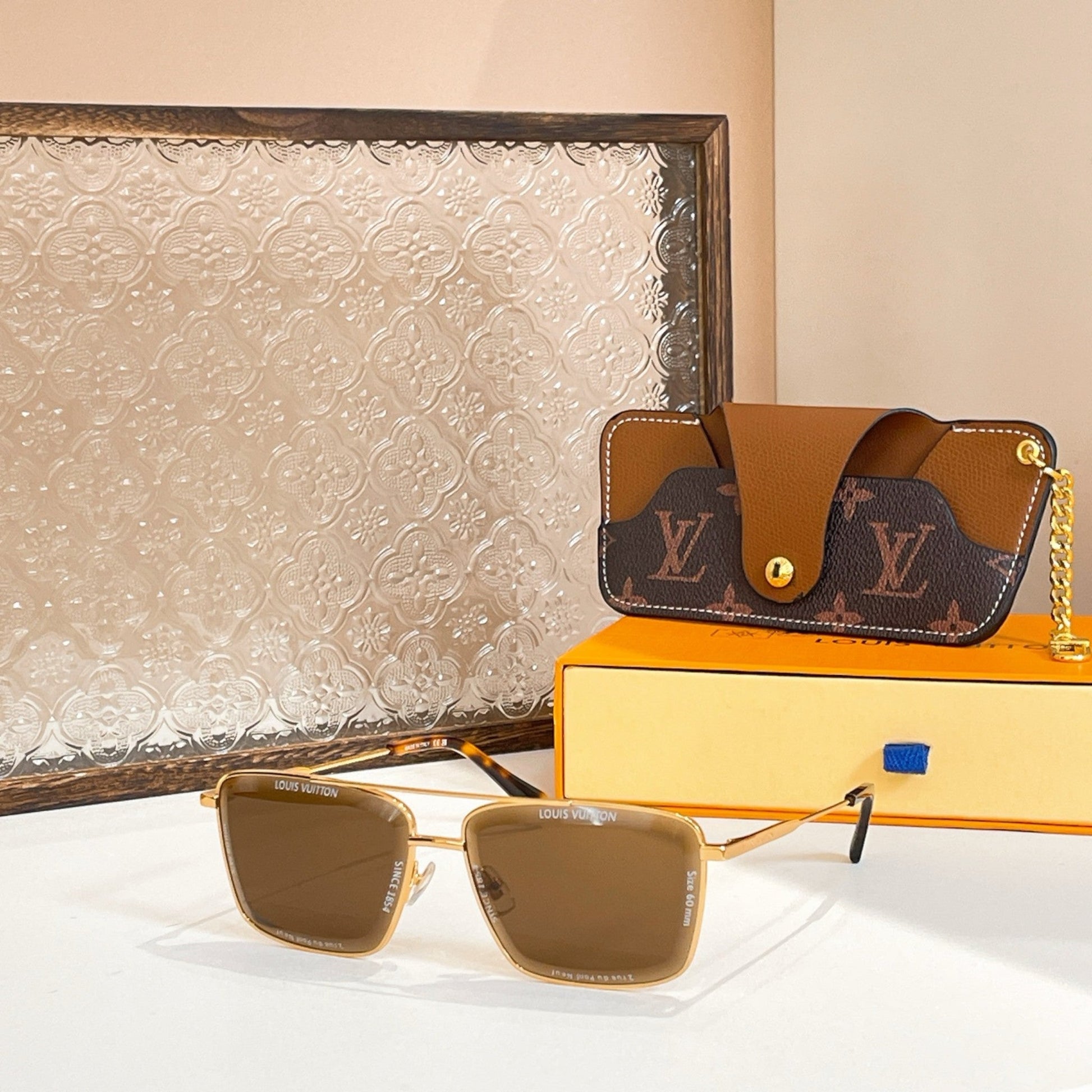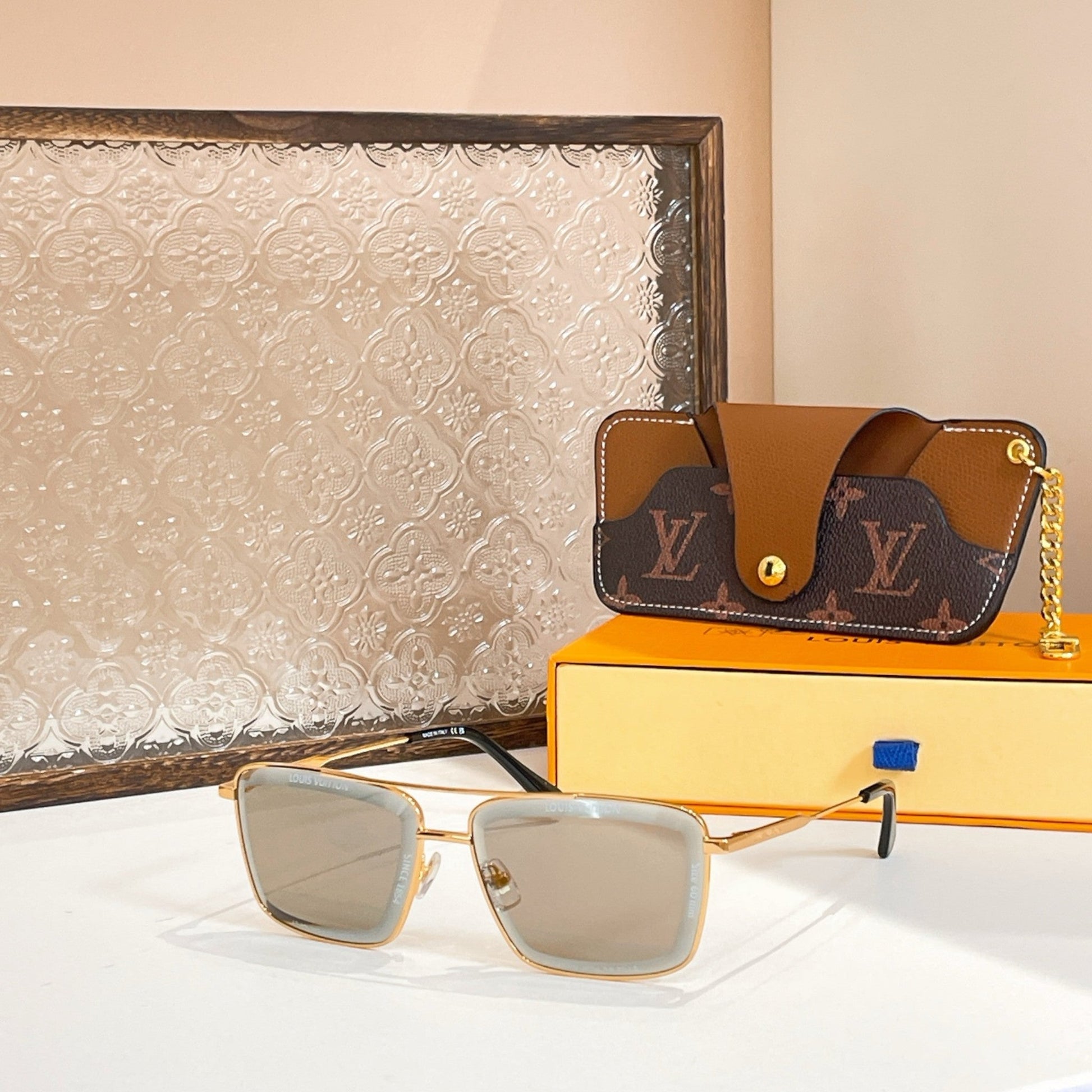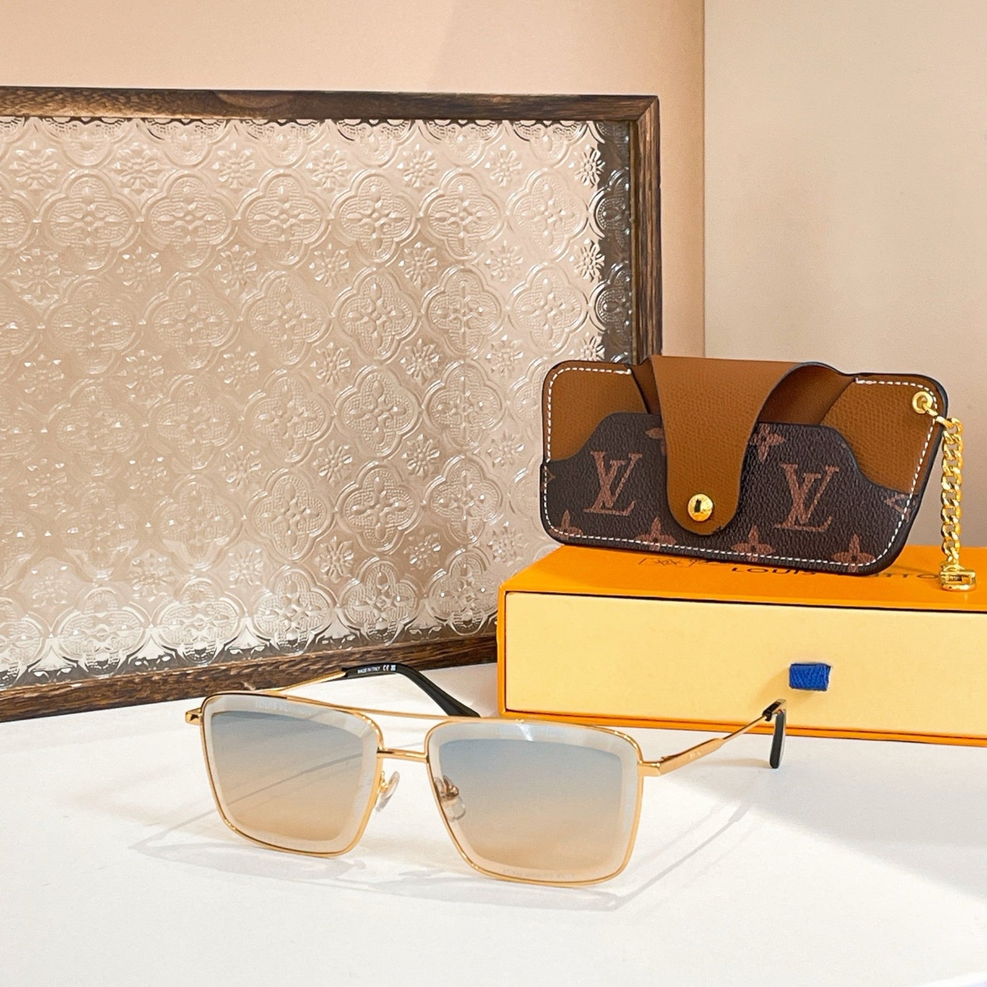 Tasarım: Ultra ince altın tonlu metal çerçevesi, odağın tamamı ikonik Monogram deseniyle süslenmiş lenslere odaklanıyor. Saplardaki ince işlenmiş logo imzası ve uç uçlarındaki Monogram dokunuşlarını tamamlıyor.